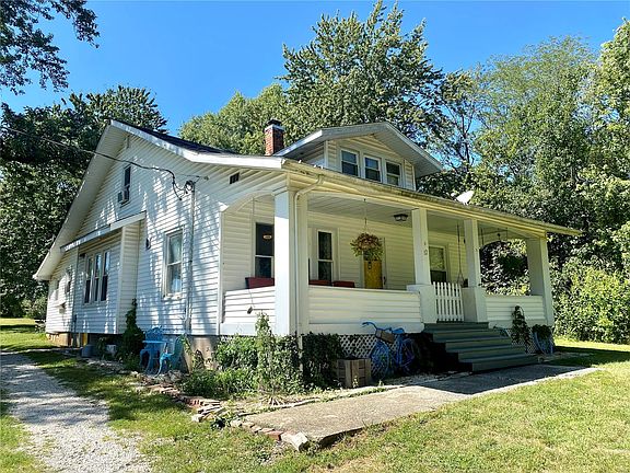 Charming farmhouse offering 4 bedroom, 2 full bath. Big front porch with swing to enjoy. Formal dining with kitchen/ breakfast room with pantry and conveying stainless steel appliances. Large living room with hardwood floors, lots of woodwork and thick trim throughout. 3 bedroom and full bath on main level, 1 bedroom and 1 bath on upper level with a private room for an office or sitting room. All of this sits on 8.78 acres at the end of a road for lots of peace and quiet. 2 older barns for livestock or horses, fenced pasture with 2 ponds. 2 car detached garage. All electric home. Front of roof replaced approx. 2013. Main level laundry with additional hookups in unfinished bsmt. Hot water heater replaced approx. 3 years ago. Come check it out!