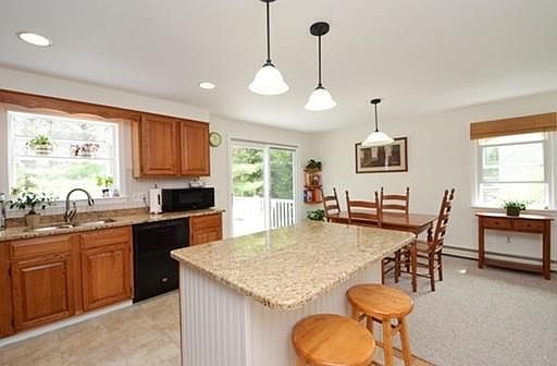 Move in ready! Well maintained 3 bedroom 1.5 bathroom home in quiet, peaceful setting. Recently updated kitchen with granite counters, maple cabinets and an island. Kitchen opens up to bright and sunny dining room with hardwood floors and sliding glass doors leading out to back deck, perfect for summer BBQs! Spacious living room boasts hardwood floors, fireplace and lots of natural light. Large master bedroom features walk in closet. Beautiful porch is the perfect spot to relax with a book or a cup of coffee. Large yard is ideal for summer entertaining! Central AC and a 2 car garage complete the package. Recent updates include renovated bathrooms, new roof and new septic! Conveniently located near the commuter rail and highway access. This home is a must see!
