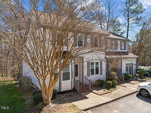 Prime Location! This stunning townhome is just 10 minutes from Southpoint Mall and under 20 minutes from Downtown Durham, placing shopping, dining, and entertainment right at your doorstep! Welcome to this charming 3-bedroom, 2.5-bathroom end-unit, where style meets convenience. As you step inside, you'll be greeted by a bright and airy living room, highlighted by soaring vaulted ceilings and skylights that bathe the space in natural light. The cozy fireplace adds a touch of warmth and elegance, creating the perfect spot to relax. The spacious first-floor primary suite is a true retreat, complete with beautiful tray ceilings and a large en-suite bathroom for added luxury. Upstairs, two additional bedrooms provide plenty of options, whether for guests, a home office, or a hobby room. The private back deck offers an ideal space for enjoying your morning coffee or unwinding in the evening, making it perfect for both entertaining and quiet relaxation. Don't miss your chance to make this beautiful townhome yours—schedule a showing today!