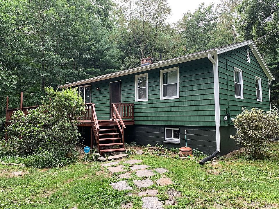 This one owner Ranch is a rare find, conveniently located, yet on a private. 3.28 acre lot surround by trees and nature. You'll hardly know that you're only 2 miles from Easthampton center and 3 miles from Northampton center via car or bike on the Manhan Rail Trail. The house is tucked back from the road and has been freshly painted inside and out. You'll love the bright and sunny interior featuring hardwood floors throughout the first floor, some freshly refinished. The 1st floor offers a remodeled kitchen, a large living room, 2 bedrooms including a large master with 2 closets, and a full bath. The lower level is finished into 3 separate rooms with abundant storage, and has a second full bath and a laundry room as well. The wrap around deck is the perfect place to enjoy watching the abundant wildlife, including many species of birds traveling from the Audubon Society land located next door. Don't miss out on this gem with numerous updates on a one of a kind piece of property!
