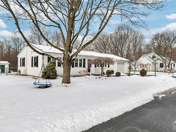 Schedule your tour of this well-kept ranch home, set on a spacious, landscaped lot in the Clearview neighborhood within the Schodack CSD. The contemporary interior features an open floor plan that seamlessly integrates the living, dining, and kitchen areas. This home offers an oversized primary bedroom, a second bedroom, two full bathrooms, and the added convenience of an attached garage. The finished basement adds valuable living spaces, including an open area with a wood-burning stove, office/study, laundry room, and extra storage. Step outside to discover a spacious deck with an above-ground pool, overlooking a fenced backyard with a cozy patio area, garden beds, and a convenient storage shed. Ideally located close to local amenities with nearby highway access. A must see home!