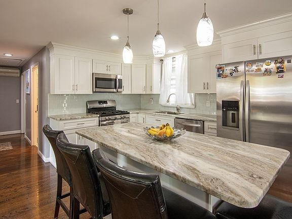 Home Sweet home!! Great location, easy access to HWY this updated ranch has so much to offer. It has 3 bedrooms, 2 baths, hardwood floors through, a beautiful open concept kitchen w/ marble counter top and an island. Basement is all renovated with ceramic title, with an extra kitchen (w/out stove) that can also be used as an in-law. Huge patio with fire pit, and the above ground pool make this house a great place to enjoy family and friends gathering. Small playground and shed is a plus. First showing at the Open House on Friday 5:30-7pm.
