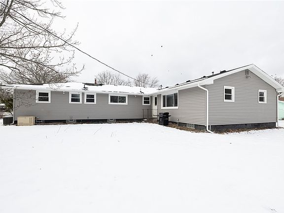 Welcome to this stunning true 5-bedroom, 2.5 bath ranch located in a quaint neighborhood in the highly desirable Town of Henrietta! Nestled on a spacious lot, this fully updated property offers an ideal blend of style, comfort, and functionality. Step inside from the new porch to discover a bright, open concept living space featuring fresh paint, new LVP flooring, and contemporary fixtures throughout. The expansive kitchen boasts trendy butcher block countertops, ample counter space, cabinetry, storage, and a large island perfect for everyday living and entertaining! The kitchen overlooks the dining area suitable for a large table and flows perfectly to the front living room. The spacious primary suite includes an en-suite half bath. 2 additional bedrooms and the new gorgeous modern bathroom complete this wing. Off the rear of the kitchen, you will find the second expansive living space with 2 more generous sized bedrooms! The options of how this floor can be utilized are endless. The mudroom off the garage completes the first floor. The partially finished lower level makes for the perfect home gym, theater, rec, or playroom complete with a bright new full bathroom! With a separate laundry & storage room this basement checks all the boxes. Conveniently located near schools, parks, shopping, and dining, with low Henrietta taxes, this home is move-in ready and waiting for you. Do not miss the opportunity to make it yours! Showings begin 1/16 @ 1pm and offers will be considered 1/21 @ 1pm