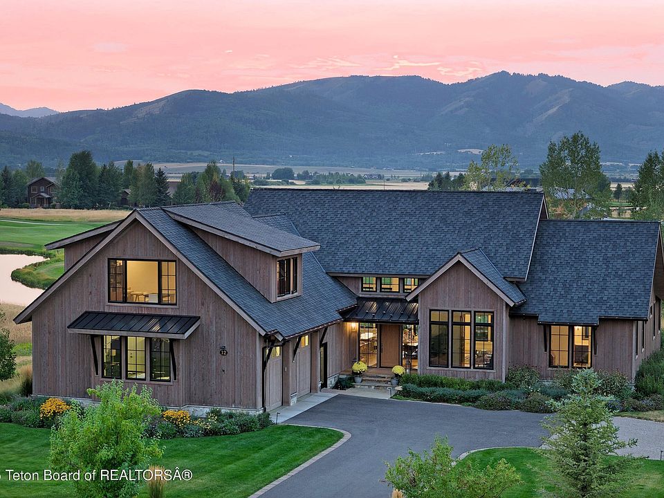 This Modern Masterpiece transcends ordinary luxury with sleek lines, expansive walls of glass, and thoughtful asymmetry which define this contemporary design. Far removed from traditional lodge aesthetics, it embraces a sophisticated palette of natural stone and cedar accents, creating a striking dialogue with the landscape. The west-facing living spaces and floor-to-ceiling windows dissolve boundaries, framing the reflective pond, immaculately manicured golf fairway and 3rd green and the dramatic mountain amphitheater beyond. Step onto the vast, cantilevered deck - an ideal spot for alfresco dining, and witness the sky ignite in hues of amber, violet, and rose, mirrored perfectly on the water's surface. This vista over the Big Hole Mountains is your permanent art installation. The open-concept floor plan seamlessly integrates all living spaces and offers 4 spacious en-suite bedrooms and 4.5 baths providing ample space for rest and relaxation. The state-of-the-art kitchen is a chef's dream, featuring top-of-the-line appliances, quartz countertops, custom cabinetry highlighted with overhead lighting and glass fronts. The spacious island offers additional seating and serves as a focal point for the culinary enthusiast. The adjacent dining area provides a stylish setting for enjoying meals with family and friends while taking in the breathtaking views outside. Functional laundry area, mudroom and pantry just off the main living area provide convenience and ample storage and work areas. Escape to the luxurious main floor master suite, where you'll find a private sanctuary complete with a spa-like ensuite bathroom with vessel soaking tub, multi-jet steam shower, his and hers closets and private outdoor access. Additionally, an adjoining light and bright office space offers a perfect retreat for remote work or quiet reading time. The expansive, oversized 2-car garage features epoxy floors, EV Charging and custom "New Age" storage. With uncompromising upgrades including built-in Sonos Sound System, Lutron "Caseta" Smart Light switches , Somify electric blinds, phantom screens, every detail reflects an owner's pursuit of excellence. Beyond your private sanctuary lies the allure of Teton Springs - an all-season resort community offering Byron Nelson-designed golf course, gourmet dining at Bronze Buffalo Grille, a state-of-the-art fitness center, full service spa, heated pool, pickleball and tennis courts, stocked fishing ponds, cross-country ski track and miles of trails Step directly onto the fairway or stroll to the clubhouse; the resort lifestyle is seamlessly woven into your existence. This is a rare convergence of visionary architecture, transformative natural beauty, and elite resort amenities. A home where cutting-edge design meets soul-stirring sunsets, and every upgrade speaks of discerning taste. Experience the pinnacle of modern mountain living at Teton Springs.