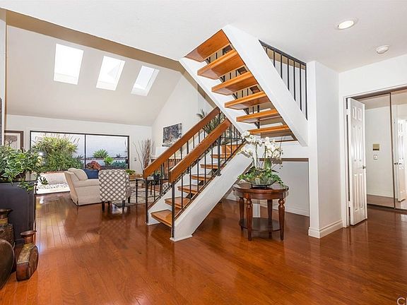 BOM! Located in the highly sought after Northwood High School District! Warm wood flooring greets you as you enter through double front doors. Very light and bright with added skylights and a wall of windows. This floor plan is unique with its extra large master suite downstairs including a retreat area with fireplace, walk in closet and direct access to your in ground spa through the set of french doors. The master bath has been remodeled and includes a relaxing soaking tub, stall shower, dual sinks and privacy toilet area. Downstairs is all wood flooring with the exception of the baths and kitchen. Relax by the living room fireplace and enjoy the outside views of this private backyard. Family gatherings can easily be accommodated in this very open floor plan. Gourmet kitchen with stainless steel appliances including refrigerator, wine cooler and breakfast nook. Inside laundry room and half bath for guests. Upstairs you will find new carpet, 3 large bedrooms, one of which is currently used as an office with richly paneled walls and built in bookcases. There is actually a walk in closet behind these built ins so it can easily be converted back to a bedroom. Dual sinks in the upstairs bathroom. Built in desk area is available in the hallway. And this bonus room...extra large with wet bar, built ins, plantation shutters and double set of french doors leading to the private balcony with awning. This home is just waiting for the personal touch and priced to sell!!