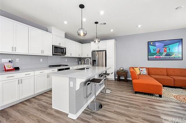 Welcome Home! This upgraded Modena Townhome in Rancho Mission Viejo is ready for you to move in! When you walk into the entry of this home you will love all the designer floor title, built in storage and large bench. At this level you will have direct access to the 2-car garage and large bedroom with private bathroom and walk-in closet. Upstairs you will love the large open floor plan, kitchen, dinning and large living area with a balcony overlooking the neighborhood. The kitchen and dining room has beautiful light fixtures, stainless steel appliances and quarts counter tops. Kitchen has a large island with farmhouse sink. The Primary room has a large walk-in closet with custom built in cabinets perfect for anyone that likes organization. The private bathroom has dual sinks and large shower with upgraded title, seamless shower enclosure and custom barn door for privacy. Garage is amazing with built in cabinets, racks and flooring. This home also features a guest bathroom, extra storage large laundry closet, recess lighting, custom shades, and neutral designer colors. The Rancho Mission Viejo community offers parks, sports parks, pickleball, firepits, BBQs, picnic areas, basketball, pool, gym, Hilltop Club with Bar, kids arcade, biking and hiking trails. Close to shopping, schools, and restaurants.