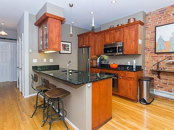 Sunny, all-renovated condo with granite countertops & Bosch appliances This beautiful renovated 2-bedroom condo on picturesque Concord Square in the heart of the South End features a granite and stainless kitchen with Bosch appliances and an open space design that flows into the dining / living area with a beautiful bow front window and exposed brick walls. The large bathroom features his & her sinks and marble tile throughout. Both bedrooms have closets with organizing systems installed. Free common laundry included. This sun-splashed unit is great for entertaining and is just blocks away from transportation, shopping, and some of the city's best restaurants.
