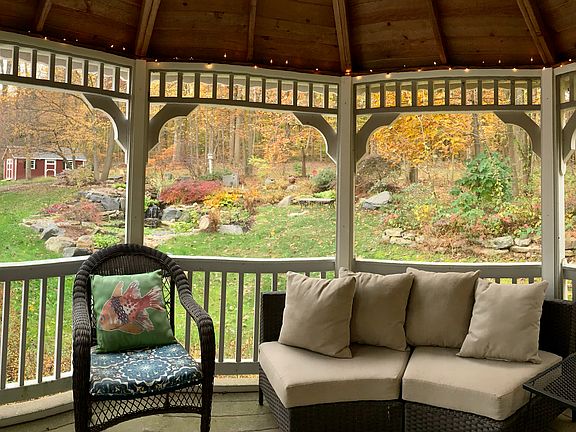 Sellers are willing to host in-home tours virtually for buyer agents, buyers and listing agent to be 'present' virtually. Beautiful 2-story house set on a 1.54 acre lot with stunning landscaping and large Koi pond in rear lawn that backs to woods. Home has a lovely updated chef's kitchen with granite countertops, large island, tile backsplash, and atrium door leading to patio. Main floor additionally features family room with vaulted ceiling and fireplace, formal dining room, office with French Doors and hardwood flooring, and sunroom with vaulted ceiling that leads to deck. Luxury master suite on second floor offers sitting room, walk-in closet, vaulted ceiling, and master bath that includes soaking tub, tile flooring, stall shower, and double vanity. There is ample closet and storage space throughout, as well as a spacious unfinished basement. The rear of the home is equally gorgeous with a built-in gazebo on the sizable composite deck that leads to a paver patio, all overlooking the impeccable yard.