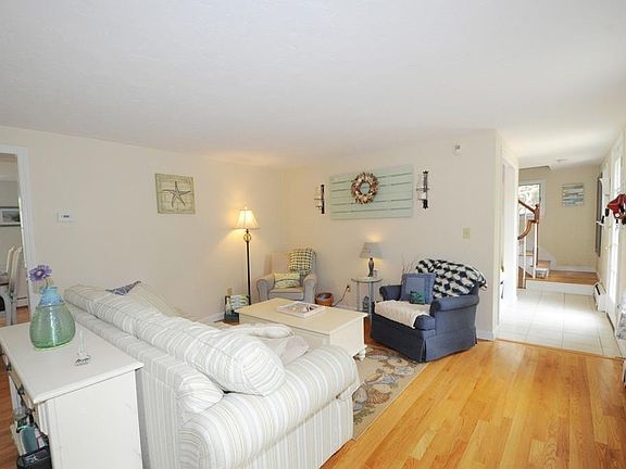 You'll love this beautiful home located in a sought after neighborhood close to Plymouth's waterfront, shopping, beaches, and much more. Step inside and be welcomed by a bright mudroom closet. A formal living room leads to an airy dining room. The updated kitchen has stunning cherry cabinets, granite counters, pantry, and storage closet. The heart of the home is the double sided fireplace between the kitchen and family room with cathedral ceilings. A guest bath with laundry and a relaxing sunroom complete the first floor. Upstairs you will find an upgraded coastal inspired bathroom with double vanity, built in shelves, and tiled tub/shower. The generous master has a large walk in closet. You will also find two additional bedrooms on this level. The spacious walk-out basement can be a used as a gameroom, media room, or hobby space. Gleaming hardwoods, many new windows, new hot water heater, and heat pump are some of the many items that you will appreciate in your new home.
