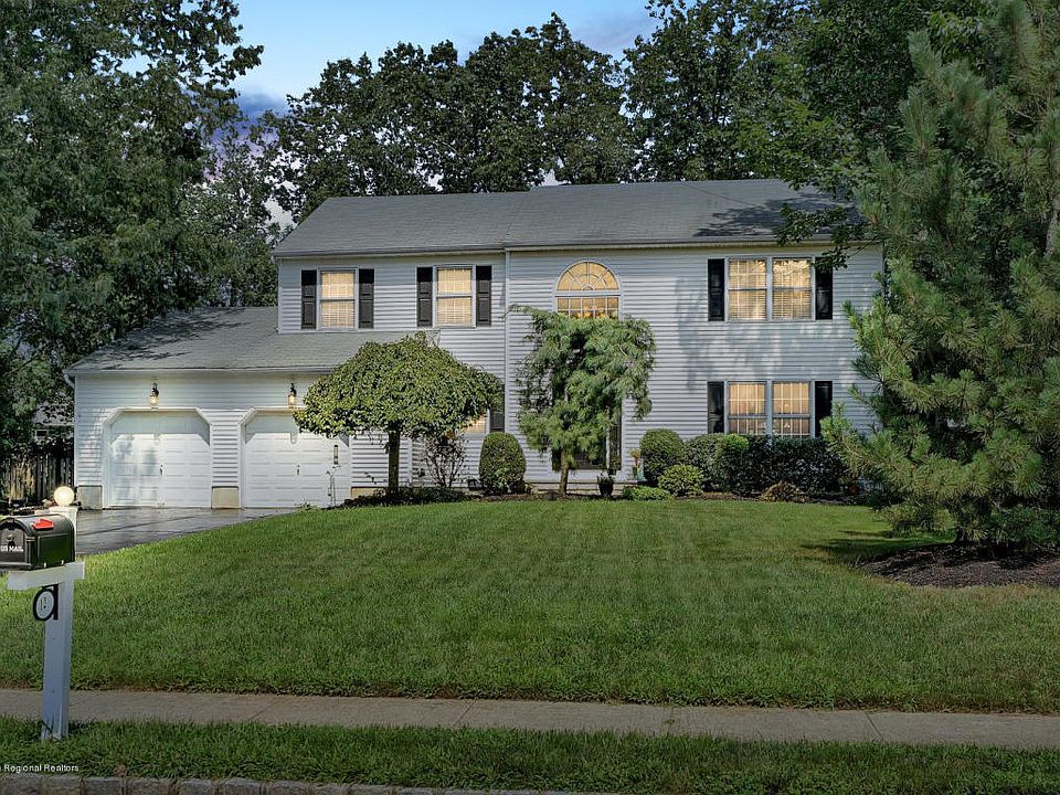 Stunning 4 bedroom colonial home on culdesac within walking distance of bus transport to NYC.Updated kitchen with stainless appliances and master bath with soaking tub. All wood and laminate flooring on main living areas and carpeted basement. Open kitchen, family room, dining area floor plan with sliders to deck.Fenced in yard with sprinkler system to designated well, mature landscaping and large paver patio perfect for out door entertaining.