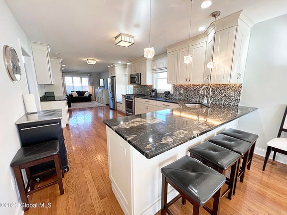 - Description: Under cabinet & pendant lighting, breakfast bar