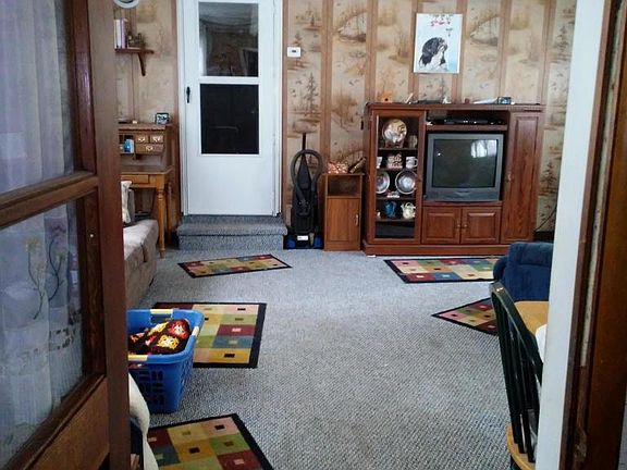 - Floors: Wall to wall Carpet, Tile, Linoleum