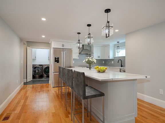 2023 TOTAL CONDO QUALITY RENOVATION BY MASTER BUILDER! This 5 room 3 bedroom 1.5 bath 1st floor unit features partial open concept floor plan, a large ultra modern island kitchen with quartz counters, stainless steel appliances; full size washer & dryer included off kitchen; ultra modern bath with glass shower enclosure, granite top vanity, tiled 1/2 bath; good size main bedroom, 2 other bedrooms, great closet space, gleaming hardwood floors throughout, New FHA by Gas furnace with Central Air Conditioning; basement storage; 2 Off Street parking spots, additional parking available. Situated on a quiet side street, very near vibrant Central Square, Red Line. Near Kendall Sq., MIT, Harvard, Charles River. PHOTOS WITH FURNITURE ARE VIRTUAL STAGING. pets allowed with restrictions. No broker fee required! Just first month and security deposit. Pets allowed with restrictions.
