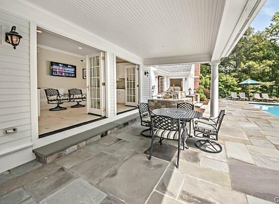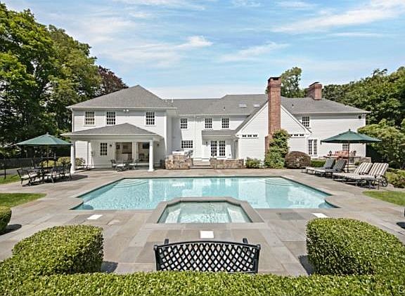 The perfect Staycation! Enjoy The Best Of Indoor/Outdoor Living. Fabulous 5BR transitional style Colonial a stone's throw from Silver Spring Country Club & only 1hr from Manhattan. In desirable south Ridgefield, amidst a private setting, this sophisticated residence offers exquisite millwork, hardwood floors & a wonderful open flow plan. Subtle paint hues, multiple fireplaces & elegant lighting is found throughout - creating an inviting space to relax & entertain. French doors provide multiple exits to the bluestone slate patio & multiple terraces. The distinguished mahogany Office is quiet & looks out over the open space beyond. The fabulous Family Rm with coffered ceiling, custom built in cabinetry, gas fireplace and wet bar adjoins the recently remodeled state-of-the-art Chef's Kitchen w/prof SS appliances & plenty of counter space to accommodate large gatherings. The nearby Pantry & Mudroom offers yet more organized storage. Upstairs, the Master Suite incl a fireplace, marble bath & adjoining Home Office. All Bedrooms are spacious & offer access to a full bath either ensuite or Jack and Jill. The lower level features a Media Room w/stadium seating, a Recreation Room, wine closet & Half Bath. Outside, multiple terraces & decks, 2 spas, a gunite pool & a fabulous Pool House w/a full bath, kitchenette & laundry, are surrounded by privacy woods on all sides & adjoin open space. A paradise only five minutes drive to the center of everything Ridgefield has to offer!