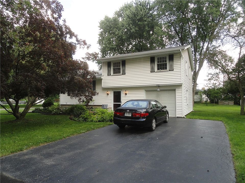 Conscientious owner has updated this spectacular split level. Maple kitchen cabinets with wine rack, swanstone sink, ceramic tile backsplash, peninsula breakfast bar, over the range microwave and recessed lights. Primary en-suite bedroom off the kitchen adds 280 sq ft to the home. 15' x 12' plus a full bath and deep walk-in closet. Foyer entry leads to a family room with a door to the back yard and large paver block patio. Gleaming hardwood floors through the living room and 3 3rd level bedrooms. Updated main bath has a 5' walk-in shower and large solid surface vanity. High efficient furnace with central air, vinyl siding and windows, architectural roof. All on a .4 acre lot within a quiet neighborhood.Delayed negotiations begin on Tuesday September11th at noon.