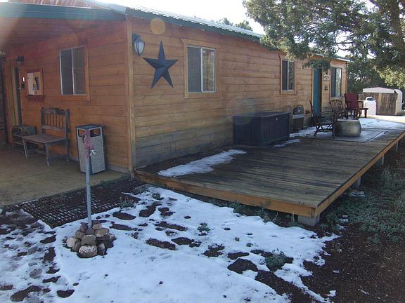 Self Contained cabin powered by a Solar system. This is a Haul water set up.Home has many upgrades inside. Secluded set up with open space views. Very clean . This is a must see.