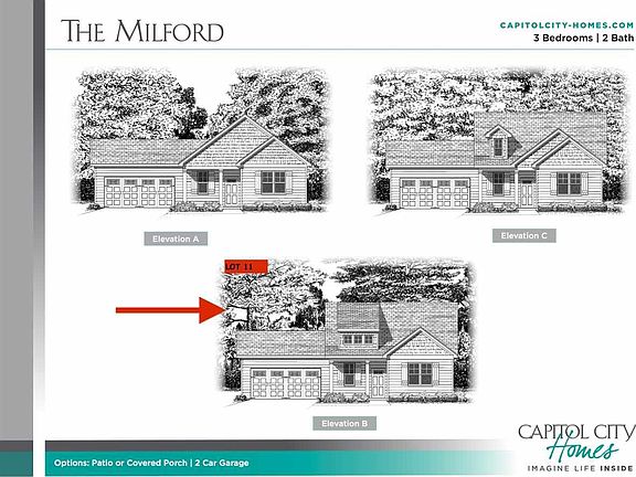 Welcome Home to the brand new Milford plan in Patterson Place. 3 bed, 2 bath 1445 sq ft ranch on .306 acre lot with city water, city sewer and natural gas. Cozy family room with gas logs. Upgraded rear covered porch. All vinyl exterior. GE stainless appliances including gas range, microwave, dishwasher, 2 car front entry garage. Functional kitchen convenient to dining and family room. Ask about selections and preferred lender.