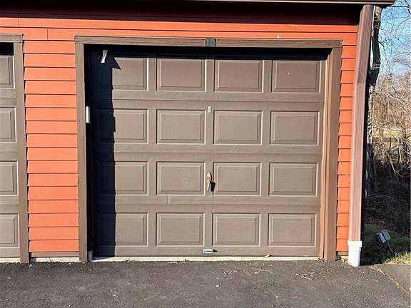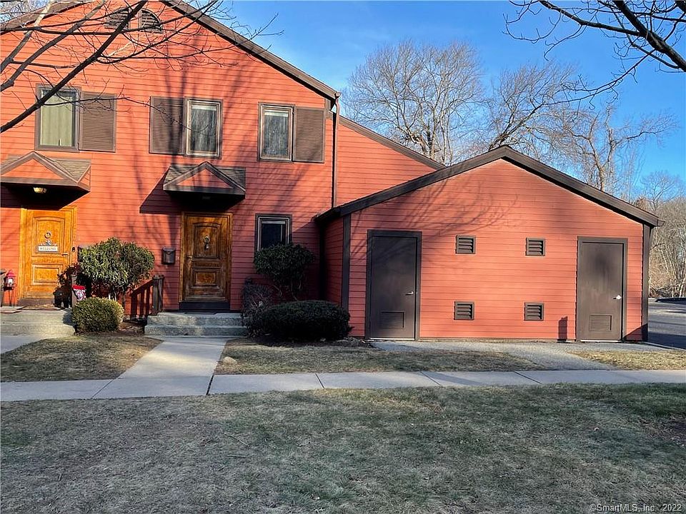 Move in ready Townhouse Condo in quiet setting, but close to everything! Stylish exterior with beautiful solid wood entry door. Kitchen has wood cabinets and SS appliances. A main floor half bath includes updated vanity. Large open Living/Dining area with a slider to back deck overlooking the woods. Easy-use and energy efficient European style windows throughout the home are a big bonus. Upstairs are two spacious bedrooms with a full bath. The finished area of the basement features plenty of light from the sliders that lead out to a patio overlooking the woods to the rear. In addition, there is plenty of storage space and a laundry area in the lower level. An energy efficient heat pump system takes care of heating and central air cooling for this unit. Attached 1 car garage with keypad at the end of the building with assigned and open parking available. Convenient yet quiet location, just a few miles to Sub Base and Pfizer, close to highway access and shopping. 1 dog and 1 cat allowed; no size restriction.