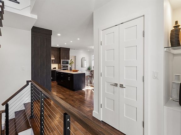 Sleek, modern and rarely available townhome in Waban with large first floor bedroom suite with private bath. Nestled on a small street in a charming neighborhood close to Zervas School, Brae Burn Golf Course and Waban Village. This spacious home is in superb condition inside & out. It has a gorgeous kitchen with modern cabinets, large island, & Thermador Appliances. The family room has a gas fireplace & large Pella windows & doors that let in an abundance of light. The second level has three bedrooms including the primary suite with stunning windows, vaulted ceiling, and an elegant bath with an oversized glass shower. Off the hallway are two bedrooms, bath with double sink, laundry and stairs leading up to a third-floor office space or yoga retreat, and access to a private roof deck.The lower level is finished & has a large area for a gym, TV & playroom. It also includes a bedroom with its own private bath, storage & walkout, perfect set-up for an Au pair.