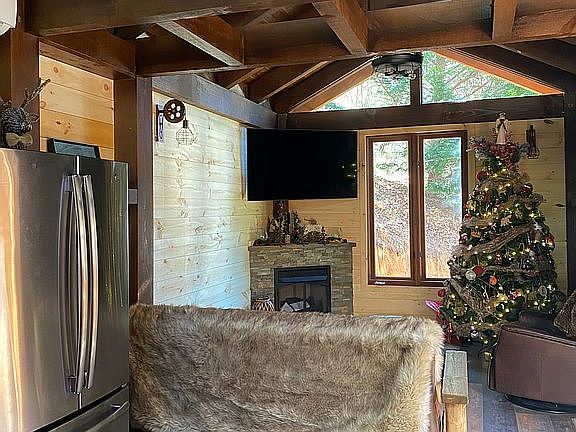 The living room has a gas fireplace and mini split for additional heating and cooling