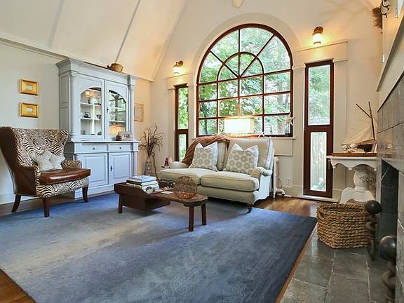 This Enchanting and Sophisticated 4 Bedroom home in the heart of Rowayton has vaulted and paneled ceilings, clever spaces and was recently renovated and expanded to fit todays lifestyle. Enter A gorgeous room with vaulted ceilings, 2 story palladian window and limestone fireplace. The stylish renovated kitchen boasts custom cabinetry, stainless steel appliances, stone countertops, breakfast bar, radiant heated floors and opens to a delightful nook with vaulted paneled ceiling for casual meals. The kitchen is open to the family room and accesses the newly built back deck for endless entertaining inside and out. A bedroom and full bath offer flexible space for a playroom or office on the first floor. The spacious Master BR has vaulted ceilings and 2 additional bedrooms have custom built ins with great storage. A chic renovated bath completes the second floor. The full finished lower level with radiant heated floors features a large family room, bedroom, full bath, wine storage and laundry room and has french doors that access the yard behind. A professionally designed low maintenance, magical and private back yard offers tiers of outdoor rooms for relaxation, play or pooch. Lots of customized closets for additional storage. Walk to train, restaurants, and concerts Rowayton School. Beach. Low taxes.