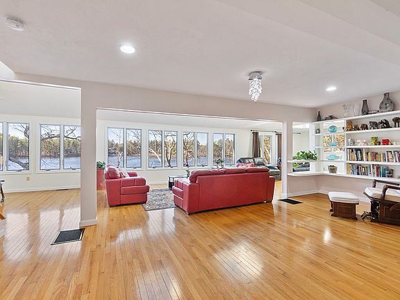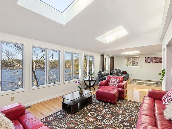 WATERFRONT -- enjoy swimming, boating and fishing on Spectacle Pond. Vacation year round in this beautifully renovated contemporary cape set on an acre. Watch the sunrise from the extended farmer???s porch and fiery sunsets over the water through the wall of windows or your private lakefront patio. Airy open concept design, most rooms in this 3 bedroom/2 bath home have waterviews and hardwood flooring. The updated, skylit granite and stainless kitchen has a large pantry. Both baths have been renovated and feature granite countertops and tile flooring. The entire second floor is a master suite. Lower level (not included in the sq.ft.) offers versatile finished room, exercise area and w/d with utility sink. Plenty of storage in the 2 car garage and boat shed. New heating & cooling (2018) interior/exterior paint (2019) new well pump and pressure tank (2020). Windows, skylights and roof replaced in 2009. BRAND NEW 3-BR SEPTIC SYSTEM to be installed prior to closing!