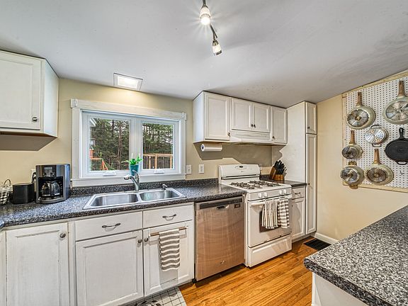 Discover the perfect blend of comfort and convenience in this delightful 3-bedroom, 1.5-bath home offering one-floor living. Beautiful wood floors stretch throughout the residence, meeting large windows that invite an abundance of natural light to grace every corner of the spacious rooms. The functional mud room stands ready to handle all seasons, guiding you into a living space defined by ease and brightness. Outside, a detached garage and a one-stall barn offer versatility for storage or hobbyist pursuits, while the expansive level yard beckons for outdoor enjoyment. Nestled in a prime location, the property promises year-round recreational opportunities with close proximity to the lake and Mount Sunapee, paving the way for cherished memories in a home that epitomizes warm and welcoming living. *Delayed showings until the open house Saturday September 23rd, 10am-12pm*