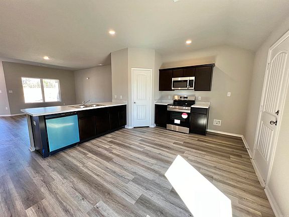 The Carson has what you're looking for in a 4-bedroom, 2-bathroom plan. A clever offset front door welcomes you in to an open-concept home. Luxury Vinyl Plank flooring flows from the entry through the Living Room and into the eat-in Kitchen. The spacious Master Bedroom is just steps from the Laundry Room for ultimate convenience. Upgrades in this home by designer: Shutters upgraded to level 3 Board & Batten, plumbing faucet upgrade 2, door bell, crown on Kitchen cabinets, laminate flush bar top in Kitchen, Luxury Vinyl Plank flooring in wet areas and Living Room and adjacent hallways, raised ceilings in Living Areas per municipal requirements, baseboards level 2, LED disk lights in Kitchen, full sod, stainless steel appliance package. THIS HOME IS SCHEDULED TO BE COMPLETE IN LATE MARCH. * AGENTS: See Agent Remarks and/or Showing Remarks. *