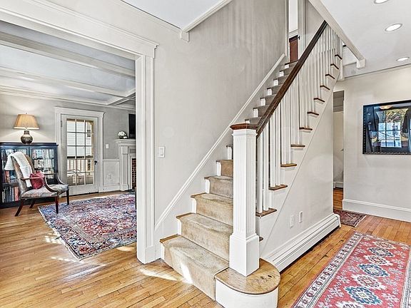 This elegant, updated Dutch colonial home combines classic charm with modern living. As you enter, you are greeted by a center foyer with high ceilings and a gracious staircase. To the right you'll find a sunny front-to-back living room with a gorgeous coffered ceiling, a cozy fireplace and hardwood floors, leading to a covered porch. The kitchen has been thoughtfully renovated, with stainless appliances, farmhouse sink and plentiful counter space, opening to the inviting dining room featuring crown mouldings. A powder room completes this level. Upstairs are four bedrooms with customized closets and an updated full bath. The unfinished attic and basement offer potential expansion space. Outside you will find a sprawling 0.4-acre lot, with mature trees, shed, sport court, and rear deck. Located near Wellesley Square, Linden Square, and the commuter rail, this home offers convenient access to schools, shops, restaurants, entertainment options, and all that Wellesley has to offer.