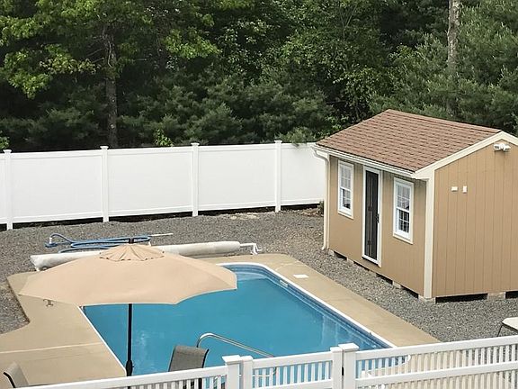 Get your Bathing Suit Ready - Pool is Now Open!! Contemporary in Green Acres Estates!! Reclaimed large plank flooring, gorgeous fireplace with approx. 3 years young pellet stove from Woodstoves and Fireplaces in Middleboro (cost approx. $4500.), a wall of windows/sliders and two modern Hunter ceiling fans complete this fabulous sun-lit living room...Open Mahogany stairs, custom built, lead to the master bedroom and 3/4 bath- wait until you see this!! The updated kitchen invites you to come in and sit down. Dark rich cherry cabinets (some with glassed doors) against the man made stone countertops (don't need polishing) make this space shine and one you would want to be in and enjoy!! Stainless stove, microwave and Bosch dishwasher approx. one year young. Two more ample sized bedrooms and a modern updated full bath on this floor... Extra lrg. finished room w/half bath, walk out to patio in lower level.