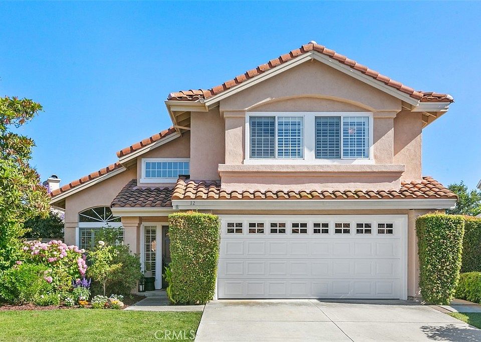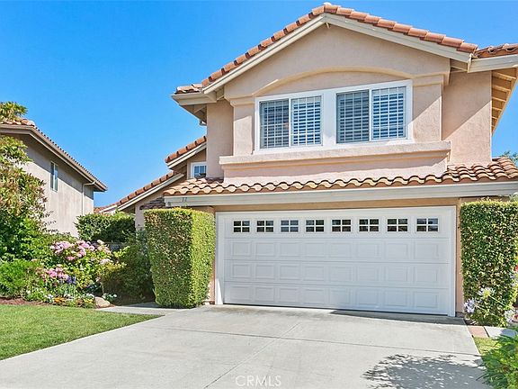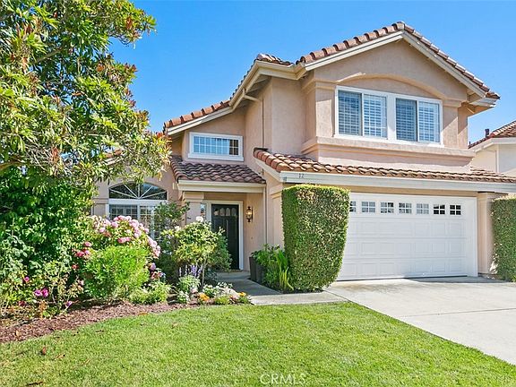 NEW LISTING!!! STUNNING home in the Seranada neighborhood located in the heart of Rancho Santa Margarita! This 4 bedroom home is the largest floor plan with 1977 sq ft of living space and Solar Panels. As you enter, you'll love the light and bright living and dining room with soaring ceilings, laminate flooring, and freshly painted in a neutral off-white color throughout! The kitchen features beautiful views of the backyard, white cabinets, granite counters, a dining nook with garden windows, and open to the family room which has a freshly painted white fireplace and mantel, and french doors that open to the backyard. So let's talk about this backyard which is the crown jewel of this home! The minute you step outside you've found Paradise! This yard is perfect for entertaining with the built-in BBQ and large island that easily seats 6 people and the covered patio with more seating which runs the length of the house! The incredible park-like yard is anchored by an impressive and mature Fruitless Mulberry tree which provides soothing shade all summer long over the alumawood patio cover. Every inch of this super private back yard is lushly landscaped and has been nurtured with love and care over many years.You'll feel like you're on a permanent vacation! The side yards are super wide and there's even a storage shed to house all of your garden tools and lawn mower. The big surprise is the private jetted hot tub tucked into a private little corner of the backyard that has stepping stones leading the way to your relaxing retreat! Once back inside, there is a designated laundry room with direct access to the garage and a powder room. Up the stairs there is all new luxury vinyl flooring in the hall and all bedrooms. No carpet in the house at all! The Master Bedroom has high ceilings, closet, and sitting area and the Master Bath has a large soaking tub, dual vanity and a second closet. The 3 secondary bedrooms all have ceiling fans and share a hall bathroom with a dual vanity and tub/shower enclosure. The low HOA dues offer you full access to the amenities and community events associated with RSM. Community features are the beach club lagoon at RSM lake which has a full snack bar in the summer, beach volleyball, and water toy rentals, 4 Jr Olympic sized pools, 12 parks, a brand new splash pad, pickle ball and sport courts, walking and hiking trails. Also walking distance to many shops, restaraunts, and movie theatre. No Mello Roos! Come and enjoy the RSM lifestyle!