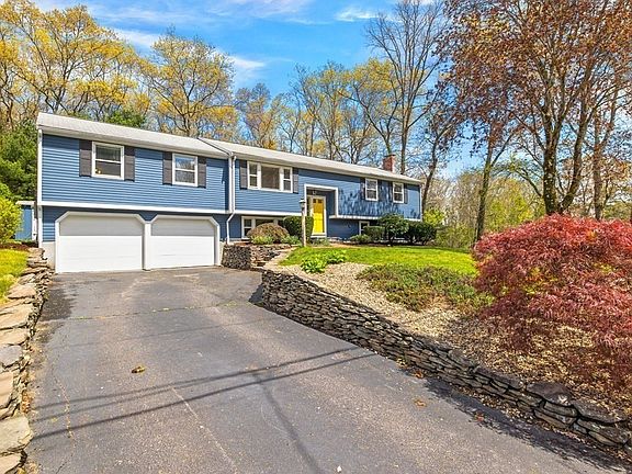 MAGNA VISTA ESTATES - Expanded split level w/ 4 beds + 2 full baths on the main level, plus a 2-car garage and an above-ground pool on a parklike lot! Situated in a prime location in one of Mansfield's fab neighborhoods w/easy rides to Rts 95, 495, downtown, schools, shopping, & more. Oversized primary suite above garage offers expansive sleeping area + fully renovated dual-vanity bathroom. Large dedicated dining room + brand-new appliances in the upgraded eat-in kitchen feat. Corian countertops, gas cooking, & sliders to screened porch w/vaulted ceiling. Enjoy bug-free summer nights while overlooking your private backyard oasis (which extends up and over the hill!) & pool w/large deck for entertaining. Hardwoods throughout main floor continue into 3 additional beds down the hall. Fresh paint everywhere; new carpets in lower level office & bonus family room w/wood-burning fireplace + dry bar. Plentiful storage on unfinished side. Gas heat, town water, easy to add AC.