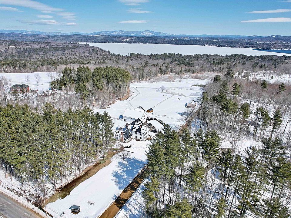 Welcome to Westlake Farm, this incredible 34+/- acre estate is comprised of 3 parcels in the heart of the Lakes Region. This property boasts two paddocks, an in-ground pool with a new liner, hot tub, large back deck, patio area, pond, a 22x44 outdoor shelter which is currently home to 22 alpacas, and gorgeous views of Lake Winnisquam and the Ossipee, Belknap and White Mountain Ranges. Enjoy a fabulous kitchen equipped with a large granite island with seating for 3, gas cooktop, double oven, gas fireplace and beautiful wooden beams. Exiting the kitchen you will pass a 3/4 guest bath on your way to the enormous great room, the 33x22 space overlooks the back deck w/ hot tub and is completed with a wet bar, soap stone surround wood-stove, and incredible cathedral ceilings. The first level of the home also offers yet another living area completed with a wood stove and a library that boasts natural wood finishings and a fourth fireplace! This home offers 4 bdrms, including the primary suite that has a full bath, 12x9 closet, and views right from the bathtub! This property has also earned is agrotourism designation with the state which allows the owner of this property to host large gatherings in its unique 5,000 sq ft two story barn-style function hall outfitted with a stunning 3/4 bth, full bar and spectacular stone patio overlooking the property. Don't forget to bring your barnyard friends as well because the barn is completed with a heated tack room and 4 stalls! Must See!