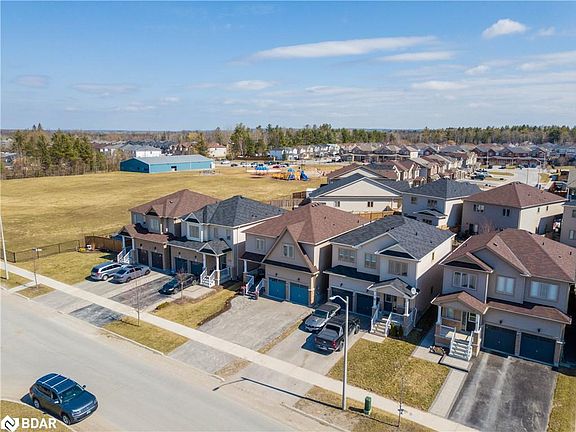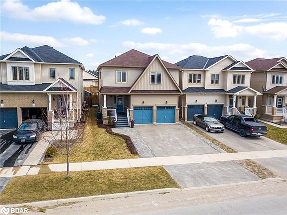 Lovely place to call home. This 4 bedroom home is situated in a family neighborhood and desirable area. Step into the main foyer with hardwood flooring, 2 piece bath, inside entry to garage, open concept family room/dining room 9-foot ceilings to the kitchen with breakfast/dining area. Walkout to rear fenced yard with concrete stamped patio. The hardwood staircase leads to the upper level showcasing 4 very large bedrooms & a convenient laundry room. The primary bedroom features a large walk-in closet, spa-like 5 piece ensuite with soaker tub, and separate shower. Three further beds with double closets. Lower level basement opportunity to make your own finishing touches. Located near walking trails & Parks, Base Borden. Easy commute to Barrie & Alliston.