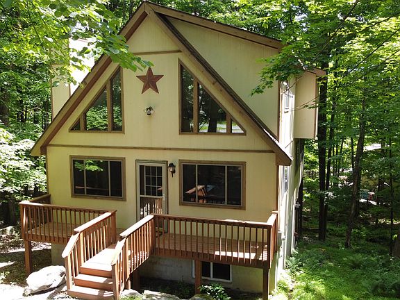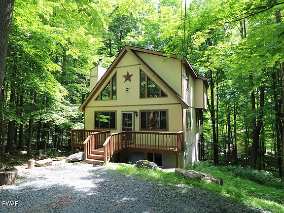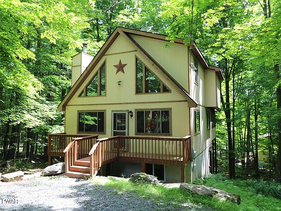 This is the chalet home you have been waiting for! As you approach this beautiful home you will immediately fall n love with the cul-de-sac location, oversized lot, and the curb appeal of this charming home! As you walk in you will notice the open floor plan and how it flows from living room to sitting room to the dining area and kitchen. Immediately off of the eating area you will be invited outside to the screened porch and deck which offers great views of mother nature as well as some privacy for outdoor cooking and entertainment. This home comes fully furnished and incudes all kitchen contents! The Hideout is an amazing recreational community in the heart of the Northern Poconos!, Beds Description: 2+BED 2nd, Beds Description: 1BedLL, Baths: 1 Bath Level 1, Baths: 1 Bath Level 2
