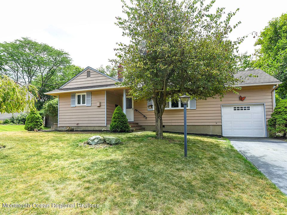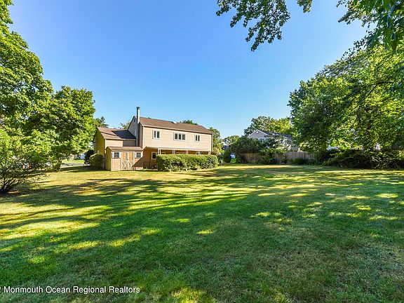 Enjoy the suburbs in this split level home in the Old Manor Section of Holmdel. Perfect for the down-sizer or first time buyer! Bright rooms and private yard are the focus of this home. Spacious Living room with vaulted ceiling and bay window opens to eat-in kitchen with wall oven and side door entry leading to your level yard. Other features include a family room with wood-burning stove and direct entry from garage, a walk-in attic, covered patio, laundry room plus 1.5 baths. Wood floors below carpeting in Living Room, Hallway and the three bedrooms. Close to all parks, stores and transportation.