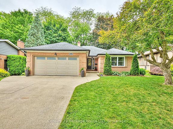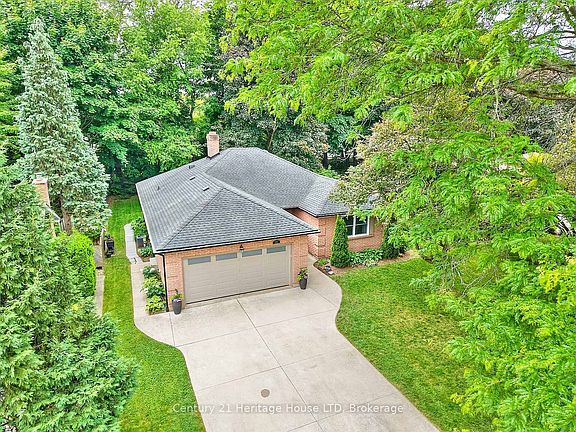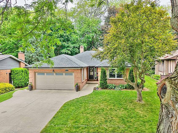 Stunning and updated all brick bungalow in a highly sought after location on a quiet tree lined crescent with no rear neighbours! Backing onto a wooded area of Steve Bauer trail, this property offers the ultimate serene park-like setting which is sure to impress. You'll love all the updates in this home which offers nearly 1800 sq ft of finished living space. The stunning open concept kitchen has been fully updated and is truly a showstopper with quartz counters, plenty of counter space, breakfast bar area, modern white cabinetry to the ceiling, stainless steel appliances and tile backsplash. The living room features a fireplace and patio doors that lead to a large sunroom. Spend your days lounging in your private sunroom overlooking the treed backyard! The 5pc main floor bathroom has been fully updated with a large glass and custom tile shower, separate soaker tub, a gorgeous vanity with double sinks and marble counters. The large primary bedroom offers a wall to wall built-in closet storage system. A large dining room, convenient main floor laundry, inside access to the double garage, and 2 additional guest bedrooms complete the main level. The lower level is finished with a 2pc bath and large rec room with custom built-in storage system. Other updates and features include engineered hardwood flooring (2020), updated doors and windows throughout the years, updated modern front door (2023), shed (2024), garage door (2023), indoor/outdoor carpet in sunroom (2022). Don't miss your opportunity to enjoy this sprawling bungalow on one of the nicest streets in Fonthill!