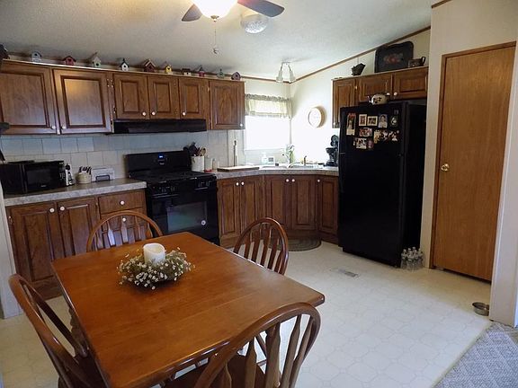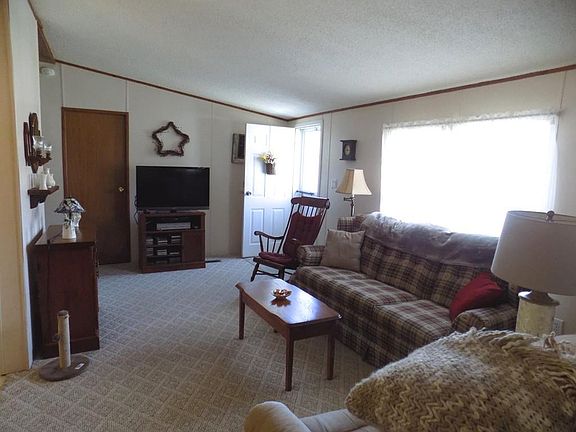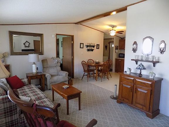 Well maintained mobile home in 55+ park. Double wide with front porch and covered deck overlooking a nice lot with perennial gardens and storage shed. Open floor plan, 3 bedrooms and 2 full baths including a master bath. Park fee includes, water, sewer, road maintenance and trash removal.