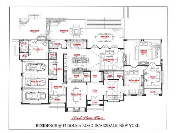 Rare opportunity for a new Estate home with pool on Dolma Road in the Murray Hill section of Heathcote. Built by Scarsdale's favorite developer, on 1.22 acres, this beautifully designed multifaceted home has grand windows for streaming sunlight. Graciousness abounds with wide hallways and high ceilings. The kitchen has two terraces for dining, entertaining and lounging. The living room, family room and library each has access to a porch and outdoor fireplace. Two powder rooms, a mudroom and a three car garage complete the first floor. The master wing has two dressing rooms, grand bath, sitting room, and private master balcony. There are four ensuite bedrooms, a fifth "common," room, and full laundry. The lower level is unsurpassed. Staircase one leads to a 44' playroom, maid's room and bath; additional rooms to customize. The right wing stairs deliver you to an astounding walk-out pool cabana, kitchenette, bath and second laundry. This is your opportunity for a most outstanding home.