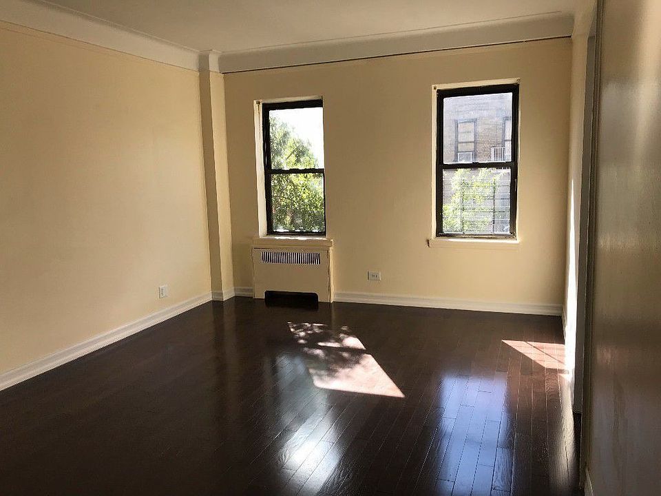 A Grand ( 950 sqft) Jr4 or 2 bedroom apartment with 1 bath, spacious entrance foyer and large living room with views of Fort Tryon Park. The smaller second room next to the kitchen can be a second bedroom or dining room. Ample closet space, 2 in entrance foyer and 2 in the main bedroom, and 1 linen closet by bathroom. The view is open and sunny. Complete gut reno!! The building is pre-war elevator with a live-in superintendent and laundry facilities. It is directly opposite Fort Tryon Park on Broadway and coveniently located near Riverside Drive and the A line subway at 200 and Dyckman Street.