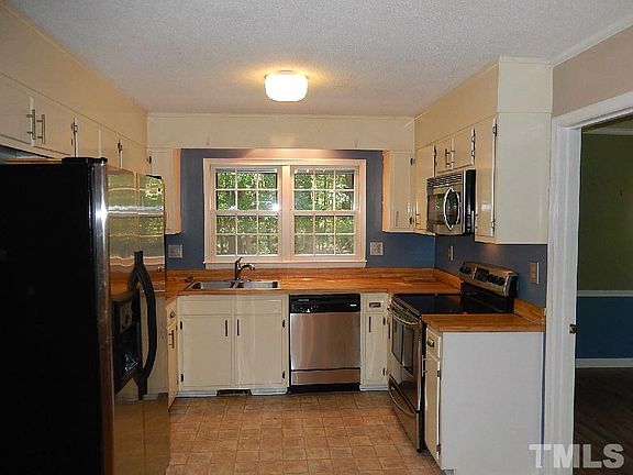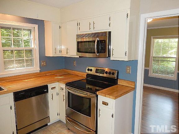 Great three bedroom, one level living home. Spacious bedrooms. Fenced in backyard. Large deck. Formal living and dining rooms. Stainless steel appliances in kitchen. Laminate floors throughout. Washer and dryer included. Conv. location off of 54. Close to dining, shopping, I-40, I-540 and RDU.