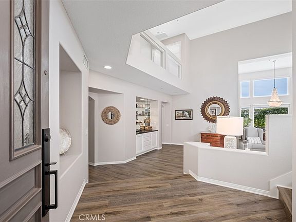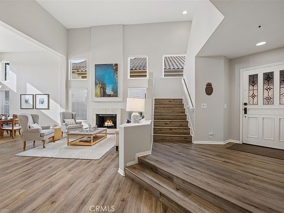 PREMIUM GOLF COURSE VIEW! Situated behind the 16th tee of the Jack Nicholas “Signature” Dove Canyon Golf Course. Boasting spectacular views of the golf course and Cleveland National Forest. Large eat in kitchen with high end appliances and a large service peninsula open to the family room which includes custom built in cabinets, a stone-faced fireplace and French doors that open to the custom hardscaped patio. Foyer opens to the formal living room with soaring ceilings featuring a fireplace and floor to ceiling windows. 14-foot ceilings in the dining room includes a capice chandelier and a wall of windows to the backyard patio. Renovations in 2020 include double pane windows, air conditioning, whole house fan, and a complete remodel of all 4 bathrooms perfectly blending elegance with functional living space. The very popular floor plan includes a downstairs ensuite bedroom, powder room, inside laundry room and an attached three car garage with ample storage. Upstairs multifunctional bonus room has French doors that open to the front balcony. Two bedrooms share a large secondary bathroom with double sinks and lighted mirrors. Wake up in the expansive primary suite with soaring ceilings and a wall of windows overlooking the incredible backyard view of the golf course and a sunrise over the distant foothills. The updated primary bathroom boasts an elegant soaking tub & shower with Carrera marble surround. Located in the guard gated community that includes a saltwater pool & spa, lighted tennis/pickleball courts, and summer concerts in the park. Low HOA and access to shopping, restaurants and hiking make this an easy decision.