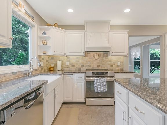 Welcome to 12 Dow Drive, a beautifully updated Colonial offering 4/5 bedrooms, 2.1 baths of finished living space on a landscaped half-acre at the end of a tranquil cul-de-sac in Hillsborough. Surrounded by mature trees, with an in-ground pool, koi pond, and multiple decks, this property is both a private retreat and an entertainer's dream.The two-story foyer opens to a sunlit living room with soaring ceilings and oversized windows, flowing into a formal dining room framed with elegant millwork. The renovated kitchen features granite counters, a center island, farmhouse sink, and newer appliances, opening to a spacious family room with a striking stone fireplace. Sliders extend the living space outdoors. A home office, powder room, and updated laundry complete the main level.Upstairs, the primary suite is a true sanctuary with vaulted ceilings, walk-in closet, and a spa bath with dual vanities, soaking tub, skylight, and glass shower. Three additional bedrooms share a well-appointed hall bath.The finished lower level adds a versatile recreation room with space for fitness, media, or play. Outdoors, enjoy a resort-like lifestyle with poolside entertaining, a waterfall-fed koi pond, and lush gardens backing to natural woodlands.With an oversized garage, top-rated schools, and easy access to shopping, dining, and commuter routes, this home offers the perfect balance of elegance, privacy, and convenience.