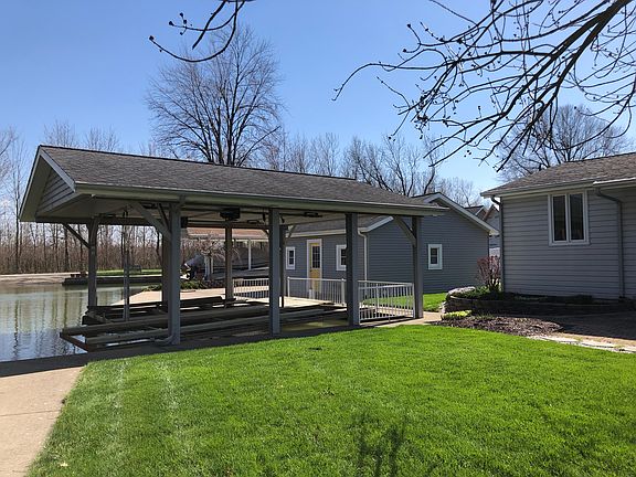 This cottage is an adorable cheerful home on a beautiful channel of Lake St. Marys. It has charm and character. Large living space. There is a separate entertainment room with bathroom and bar. The cottage has a huge two car garage attached and a large storage building separate. Also, one of the nicest perks it has a covered lift for two boats. One for pontoon and the other for speed boat. Many updates with a huge amount of storage and a great place to share family/friend time!