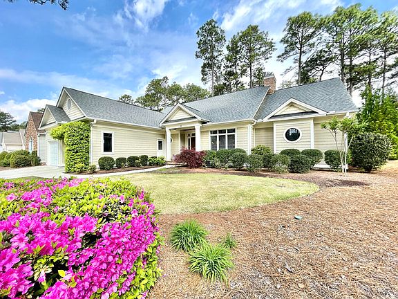 Elegant and charming custom built golf front, home at Pinehurst National 9. Located on the 8th fairway with views of the 7th and 8th fairways. The property offers wonderful privacy with a covered porch, outside patio area, and built in fire pit. Open floorplan with hardwood floors, crown molding, high ceilings, granite counter tops throughout, and many windows. Professional landscaping for great curb appeal.There is an active transferable PCC Charter Membership attached to this property.