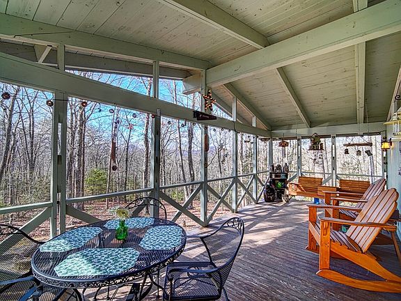 LOCATION! Desirable south end of Union County. Minutes to Vogel State Park, Appalachian trail, Helton Creek Waterfall, Nottely river & Brasstown Bald Mtn. Don't let the year built deter you, as it shows like new! HVAC is only 5 years old, metal roof only 8 years old, newer windows, private well only 5 years old, plus detached garage with concrete floor only 5 years old. Ranch style with 3 bedrooms & 2 baths. Updated baths, new master bath added with walk in closet & another room being used for an exercise room but could be second walk in closet or even an office! Easy maintenance hardie board type siding. Private wooded 0.84 acre lot with seasonal mountain views. Unrestricted land, which is very rare to get. Great screened porch to watch the beautiful sun set over the mountains. Hickory cabinets with granite countertops & tile backsplash. Gas log fireplace. Hardwood floors. Easy paved access to circle driveway. Gentle terrain. Fire pit area for those chilly fall nights. This is the mountain getaway you've been looking for!