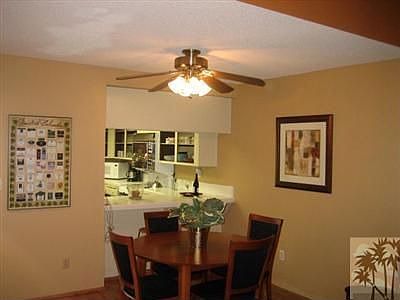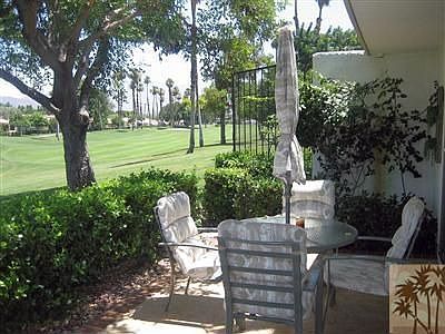 Resort living at its best in upscale Rancho Las Palmas C.C. which is right across from The River. This well kept home is located on the golf course with fabulous fairway and mountain views from the extended patio which has been redone with acrylic concrete. A great feature of this home is the very private entry patio, with an alumawood patio cover, which perfect for outdoor entertaining. The living room features an electric fireplace that creates a great ambiance. This home has been upgraded with glass panel front doors and phantom screens, imported cork flooring in the living area and bedrooms, three solatubes and a new furnace and air conditioner. This home also has a new polyurethane foam roof with a heat reflective coating. Enjoy the community pool & spa which is only a few steps away. The Monterey Gate is close by for easy access.