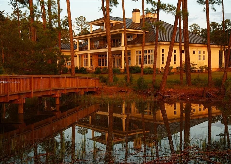 This one of a kind 10+ acre private estate with over 800' of frontage along the banks of the Okatie River is the perfect setting for one of the most stately homes ever built in the Lowcountry. It boasts a total of 7 BR, 9 full BA, and 2 half BA, two 3 car garages with conditioned storage, 2 BR, 2 BA guest house (included in 7 BR), 2 full master suites, large sitting room/study off master suite, 1,000 sqft office wing, theatre, 3,000 sq. ft. of porches, 2nd floor dining room. All this plus a private peninsula leading to an oversized custom dock, jetski lift, floater and main boat lift. OSCREA