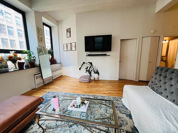 XL Corner 1BR Loft with 14 Foot Ceilings & Dining Alcove / Home Office! Available August 15 ! Ultra Modern Flatiron Loft in a Boutique Elevator Laundry Building! Welcome to your new home at 12 East 22nd Street, a spacious and bright 1-bedroom apartment nestled in the vibrant Flatiron District of NYC. Available starting August 15, this seventh-floor apartment boasts spectacular natural light with North and West-facing windows. The apartment features a generous living space with high ceilings and oversized windows that flood the space with natural light. The large bedroom offers a peaceful retreat with plenty of closet space and room for additional furnishings. The sleek bathroom features contemporary fixtures. Gleaming hardwood floors run throughout the apartment, adding warmth and elegance to the space. There is an additional den/dining area and multiple closets throughout the apartment. 12 East 22nd St features: Virtual Doorman: Enjoy the convenience and security of the Butterfly virtual doorman system. On-Site Super: A live-in super is available in the building to assist with any maintenance needs. Laundry Facilities: Convenient laundry facilities available in the building. Prime Location: Situated in the heart of the Flatiron District, 12 East 22nd Street offers unparalleled access to some of the city's best dining, shopping, and entertainment options. You're one block from Madison Square Park, the iconic Flatiron Building, and an array of trendy boutiques and eateries. With multiple subway lines nearby, commuting is a breeze. Don't miss out on this opportunity to live in one of New York City's most desirable neighborhoods. Schedule a viewing today and experience the best of Flatiron living!