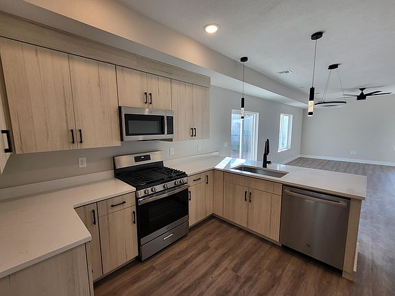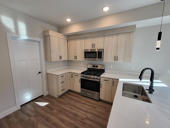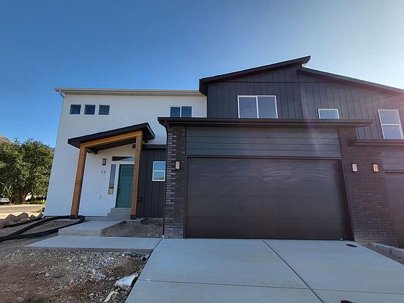 BRAND NEW Modern twin home No HOA! Student housing or nightly rental possible! 3 bedrooms 2.5 bathrooms, Covered front porch with towering 8'' rough sawn beams, Metal, Brick and Stucco exterior for low maintenance and contemporary elegance. Luxury Vinyl Plank flooring throughout main level, Modern Kitchen with large pantry, flush flat panel cabinets with quartz countertops and GE appliance package. 9' ceilings on both levels of the home. Quality Moen plumbing fixtures throughout. Quartz countertops in all bathrooms and laundry. Spacious primary suite with large soaking tub, double vanity and walk-in closet. 2 car garage with 8' tall garage door and room for overhead storage. Includes low maintenance xeriscape landscaping. Engineered foundation built on helical piers assures the stability of the entire structure. Convenient central location, with mountain views and connection to trail system nearby. Own 1 side or both!10K discount if both sides are purchased! Listing agent is related to seller